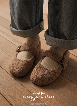 - 5DD00155LJ_로엔리 퍼안감 모직 리본플랫