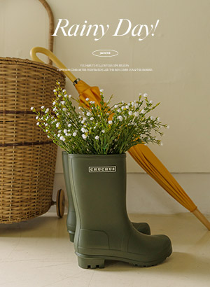 장마철 완벽대비! 물을 완벽하게 차단해주는 롱한 기장감의 레인부츠구요, 컬러감까지 예뻐 스타일을 확- 살려주는 아이템이랍니다:) -