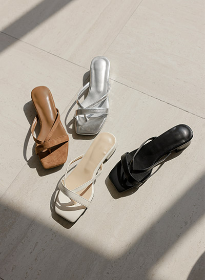 x자로 꼬여져 있는 스트랩으로 발등을 안정적으로 잡아주고, 낮은 굽으로 편안하게 신기 좋은 여름 슬리퍼에요! - 48,500원