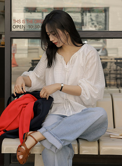 풍성한 아웃핏으로 로맨틱하면서도 청순한 무드가 느껴지는 블라우스구요~ 스트링넥으로 원하는 만큼의 파임 정도를 조절할 수 있으며, 정교한 자수 디테일이 고급스럽답니다! - 28,600원
