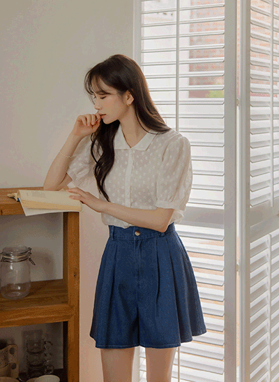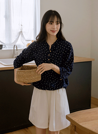 수수한 감성이 느껴지는 코튼 블라우스구요, 작은 카라넥이 포인트가 되어 러블리한 아이템이에요! 잔잔한 플라워 도트가 매력 포인트랍니다 - 24,800원