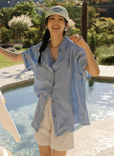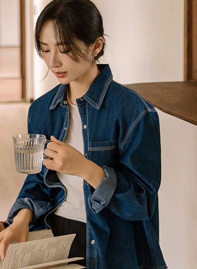 바람에 살랑이는 초경량 아이스텐셀 데님! 루즈한 핏으로 군살을 쏙- 커버해주는 데님셔츠에요 - 27,500원