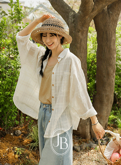 뜨거운 햇빛과 자외선 걱정 없이 시원하게 입는 린넨 셔츠! 튀지 않는 은은한 체크 패턴이 더욱 여리하게 느껴지며, 낙낙한 루즈핏으로 제작하여 다양하게 활용할 수 있도록 했어요♥ -
