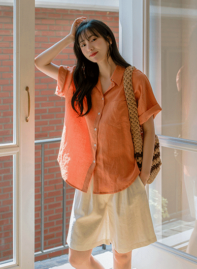 고급스러운 린넨 100%로 소재감이 매력적인 반팔셔츠구요, 낙낙한 핏으로 체형을 싹- 커버해주어 편안하게 입기 좋은 아이템이랍니다 - 48,500원