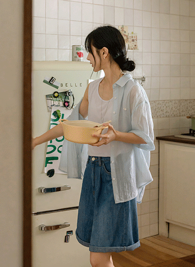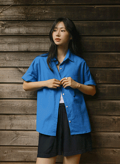 뜨거운 햇빛을 가려주는 살안타템으로 활용하기 좋은 셔츠! 공기처럼 가벼운 소재와 워터리한 색감으로 수수한 감성을 자아내요 나시 위에 툭 걸쳐도 좋고, 깔끔하게 셔츠로 입어도 좋아요 -
