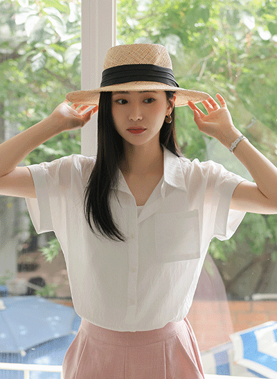 높은 판매량을 자랑하는 세미크롭 입술포켓 셔츠의 여름버전! 매끈한 원단으로 더욱 시원해진 반팔 블라우스에요! 데일리뿐만 아니라 포멀한 출근룩도 잘 어울리는 아이템 - 29,800원