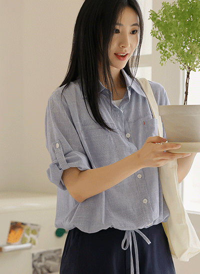 밑단 스트링을 조여주면 봉봉한 핏이 연출되는 7부소매 롤업 셔츠 만나보세요 -