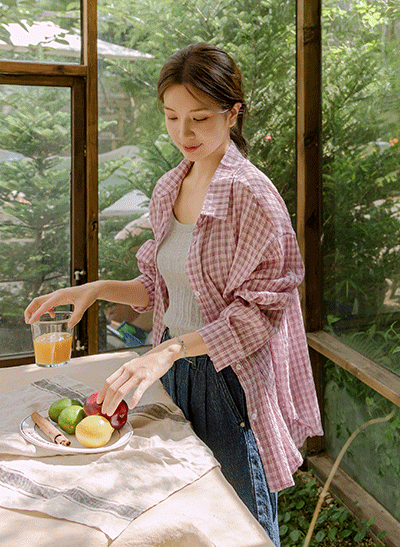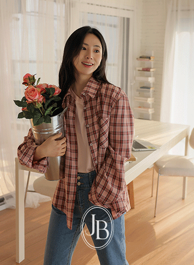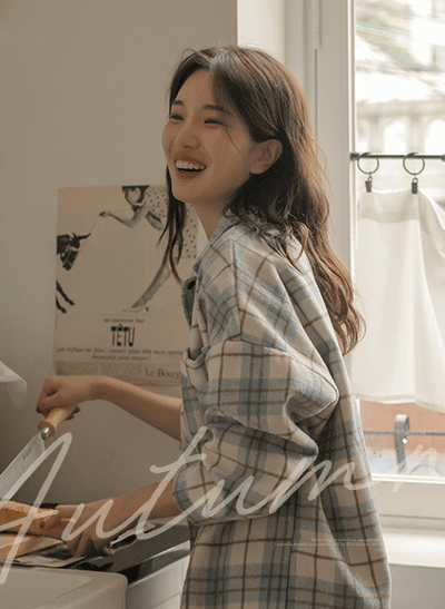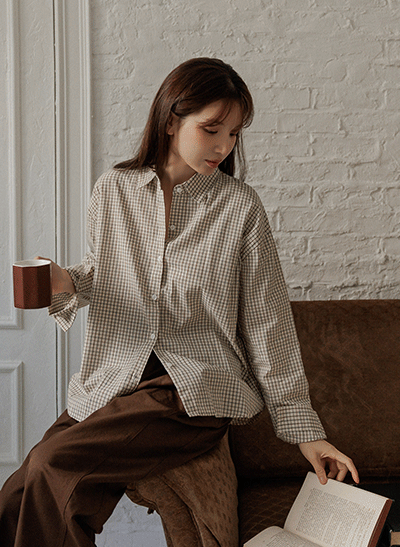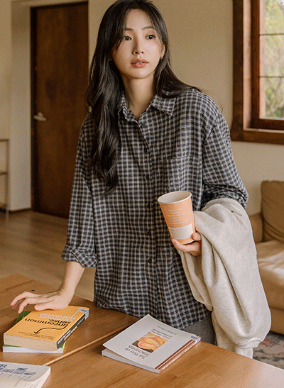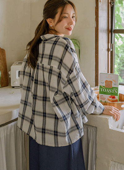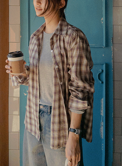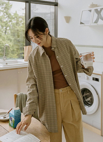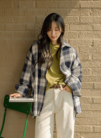 루즈한 핏이 군살을 싹- 커버해주어 아우터나 단품으로 입어도 좋고, 가디건이나 니트 안에 레이어드해도 잘 어우러지는 체크패턴이에요 -