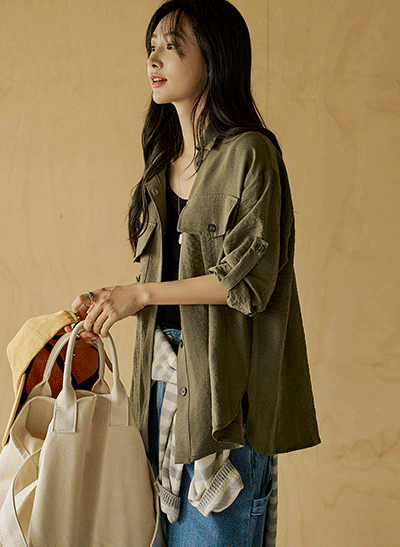 한 여름에 입어도 좋은 가볍고 시원한 아사소재로 만든 셔츠에요! 루즈한 핏감이라 아우터로 활용해도 좋답니다 -