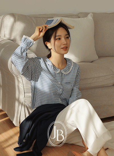 - 6OA0835NN_[JUST BETTER] 블링 레이스카라 체크블라우스