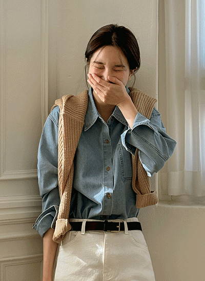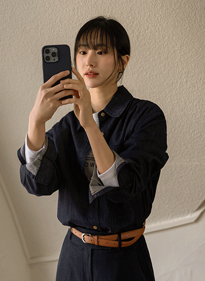 시즌을 타지 않고 세련되게 입을 수 있는 이염방지 데님 셔츠! 봄엔 단독으로, 여름엔 슬리브리스 위에 아우터로, 가을&겨울엔 이너로 레이어드해서~ 데님 셔츠 하나로 계절마다 다양하게 입어보세요:) -
