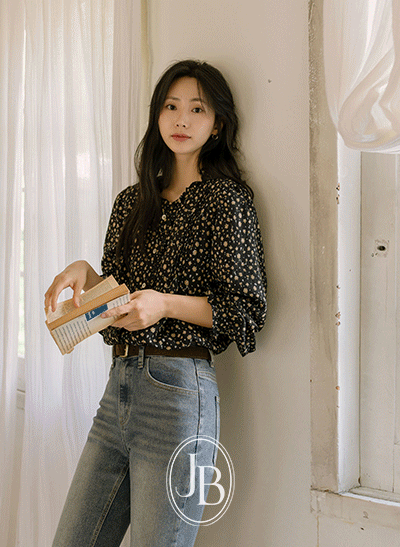가을 신상으로 보여드리는 저스트원 제작 블라우스에요 여리한 플라워팬턴과 프릴 디테일로 포인트를 주어 디자인했어요 여유핏으로 사이즈 구애 없이 입기 좋으면서 룩에 확실한 포인트가 되어드린답니다 -