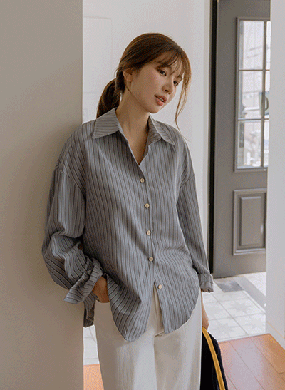 텐셀 소재로 매끈한 소재로 가볍고 시원한 무드로 즐기기 좋구요 루즈한 핏이라 군살을 커버해주어 편안하게 착용가능한 셔츠에요! 잔잔한 스트라이프까지 매력적♡ - 24,800원