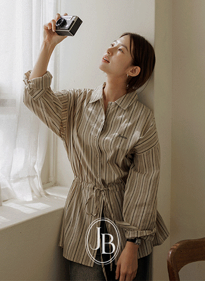 롱한 기장감에 여유핏으로 셔츠와 아우터 그 중간으로 활용할 수 있는 스트라이프 스트링 셔츠! 허리 스트링으로 라인을 잡거나 편안하게 풀 수 있으며, 세로 스트라이프 패턴이 세련된 무드를 더해줘요! -