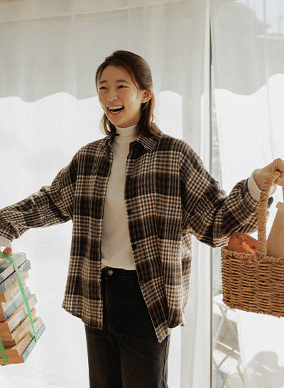 도톰한 모직체크로 겨울에 따듯하게 입기 좋구요, 넉넉한 품이 군살을 자연스럽게 커버해주어 편안하게 입기 좋고, 캐주얼한 스타일의 아이템이에요! -