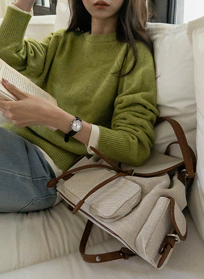 넥 중심이 트여있어 산뜻하면서도 단정한 무드가 느껴지는 반오픈넥이 포인트구요~ 울과 캐시미어가 혼방되어 가볍지만 따뜻하고, 보풀도 적어 오래오래 함께 하기 좋은 니트랍니다! -