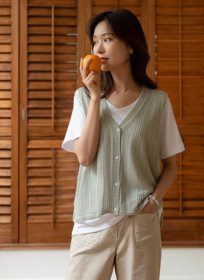루즈한 핏감이 군살을 커버해주어 티셔츠 위에 입기 좋은 오픈 조끼구요, 바람이 잘 통하는 펀칭으로 시원하게 입기 좋아요! - 17,800원