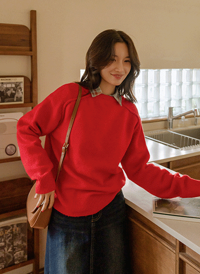 - 4DA30841HN_레디시 도톰 라운드 니트