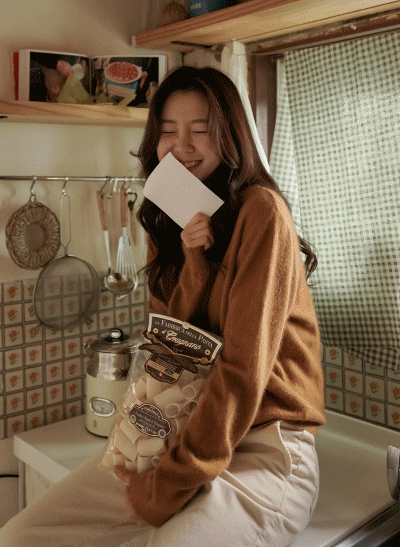 사랑스러운 컬러감에 퐁당 빠진 브이넥 니트구요~ 울과 캐시미어가 혼방된 니트로 가볍지만 보온성이 든든하여 간절기까지 오래오래 입을 수 있답니다! - 24,500원