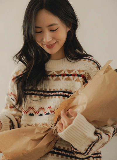 겨울 감성을 가득 담은 노르딕 패턴이 돋보이는 니트에요 울 혼방 니트로 부드럽고 따듯하게 입을 수 있어요 - 39,800원