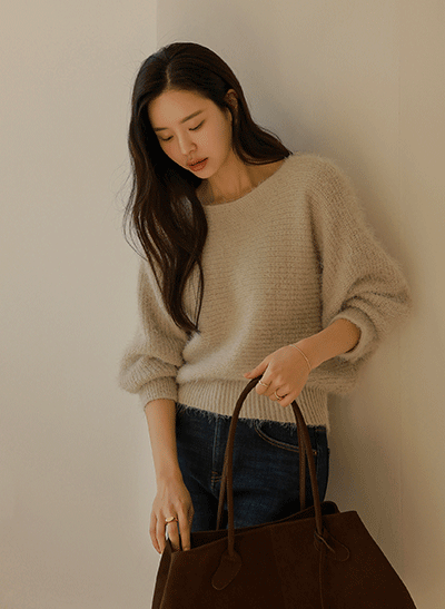 낙낙하면서도 여성스러운 무드가 느껴지는 가오리 핏 니트로 상체 군살이 가볍게 커버되며, 우아한 헤어감의 부드러운 솔잎사 니트로 예쁜 겨울 니트웨어로 추천해요♥ - 24,500원