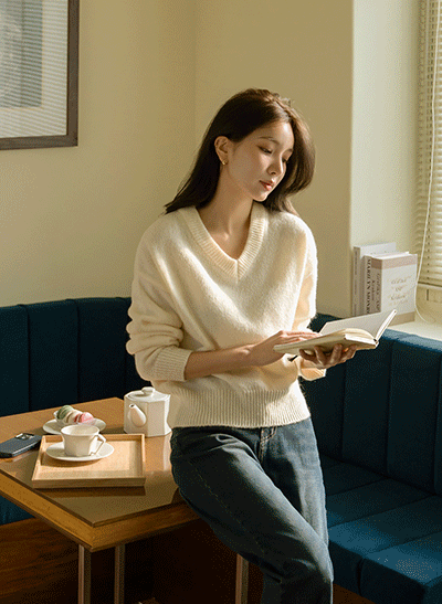 알파카가 혼방된 브이넥 니트로 포근하면서 따듯하구요, 브이넥 디자인이라 답답하지 않고 여성스러운 무드를 자아내요! - 26,500원