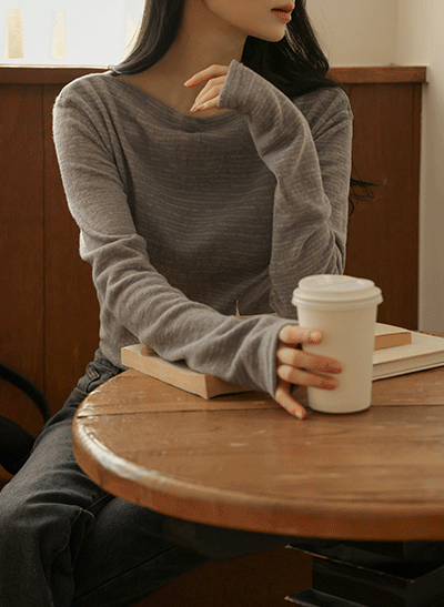 내추럴한 반목 티셔츠로 목을 조이지 않아 편안하게 착용 가능하구요, 안쪽에 부드러운 속기모로 f/w에 이너로 입기 좋은 아이템이에요 -