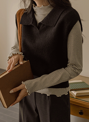 - 5DA32106HR_하프 단가라 포근울 니트조끼