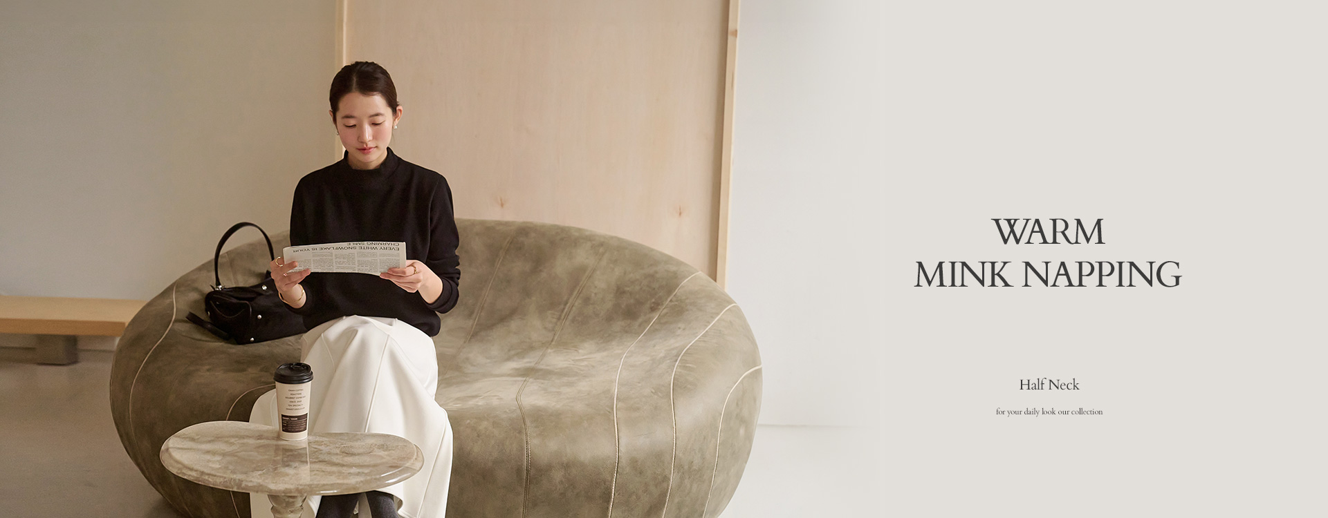 도톰한 두께의 비스코스 소재 혼방으로 따뜻하면서도 파우더리하게 착용되며, 목 전체를 덮어주는 폴라넥으로 든든함은 물론, 잔골지 짜임으로 라인이 슬림하게 보여진답니다