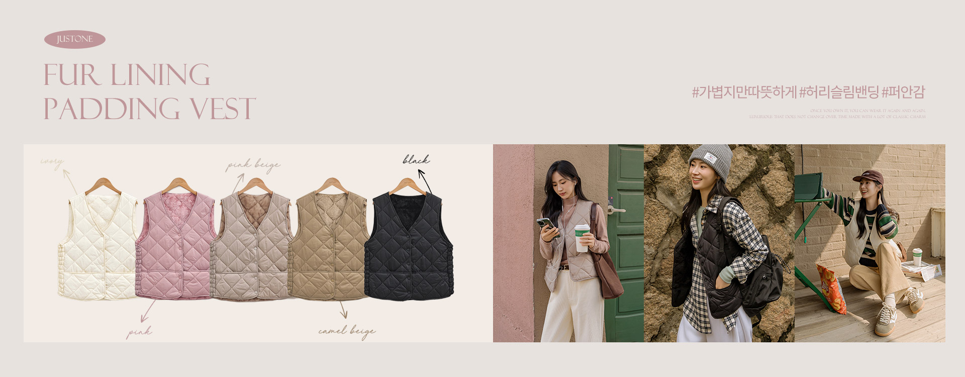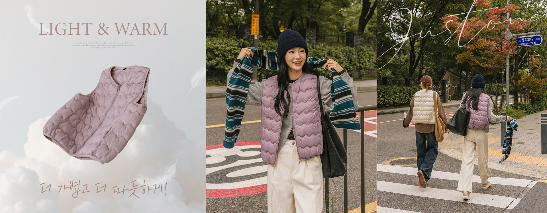 지그재그 물결 모양으로 귀여운 무드를 자아내고, 가벼운 초경량 무게로 F/W에 이지하게 툭- 입기 좋은 패딩베스트에요! 화사함이 느껴지는 컬러들로 구성되었답니다