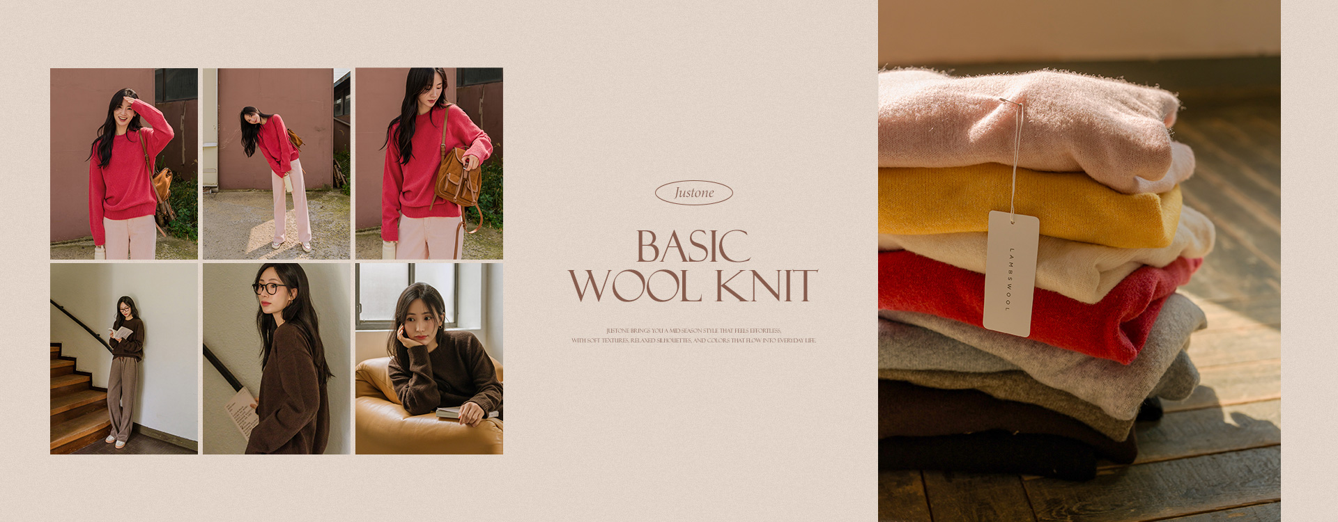 울과 캐시미어가 혼방된 니트로 가벼우면서도 따뜻하며, 맨살에 자극 없이 부드럽게 닿아 착용감마저 좋구요~ 담백하고 깔끔한 디자인에 2가지 넥라인으로 활용도와 만족도를 더욱 높였어요!