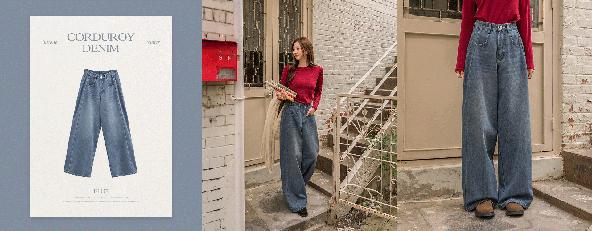 스판 짱짱으로 편하게 입었던 팬츠가 겨울 융기모로 따뜻함까지 더해서 돌아왔어요! 누가 입어도 예쁜 와이드 핏이 군살까지 가려주며, 코튼&데님 2type으로 취향에 맞게 골라 입을 수 있어 좋아요~