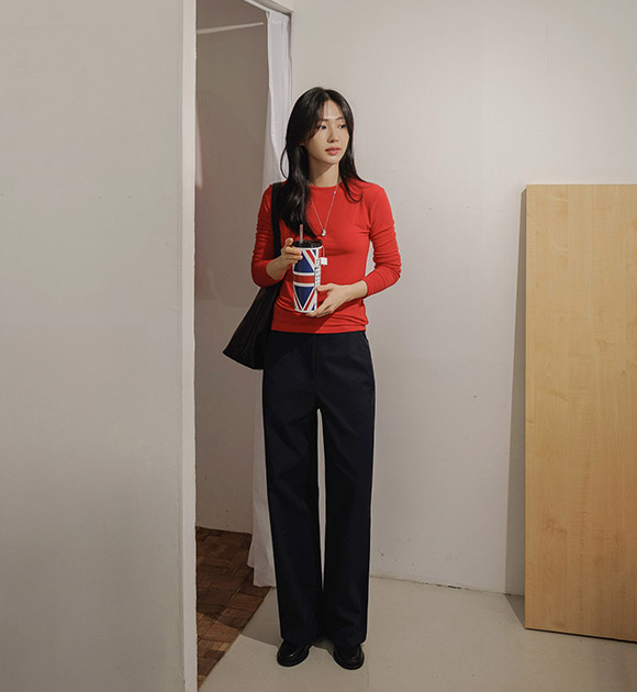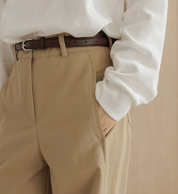적당한 스판기가 있는 매끈하고 깔끔한 원단이라 출근룩부터 데일리룩까지! 밑단으로 내려갈수록 살짝 좁아지는 테이퍼드 핏으로 군살 커버에 완벽하며, 사이드 엣지 라인이 슬림 효과와 세련미를 더해줘요