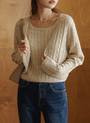 - 5DA30434HN_데일리한 꽈배기 낙낙가디건