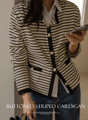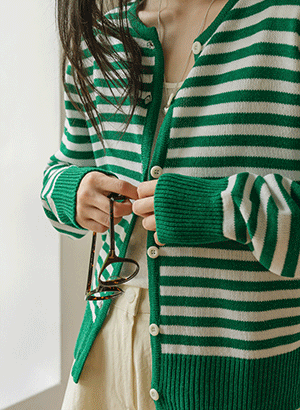 - 5DA29589SS_엠블럼버튼 스트라이프 가디건