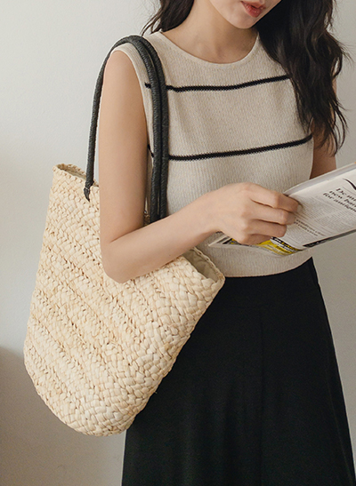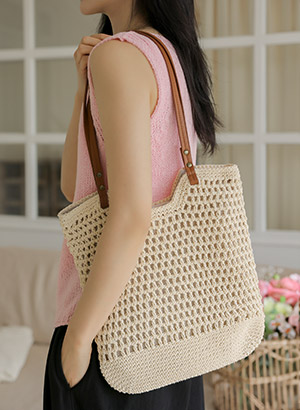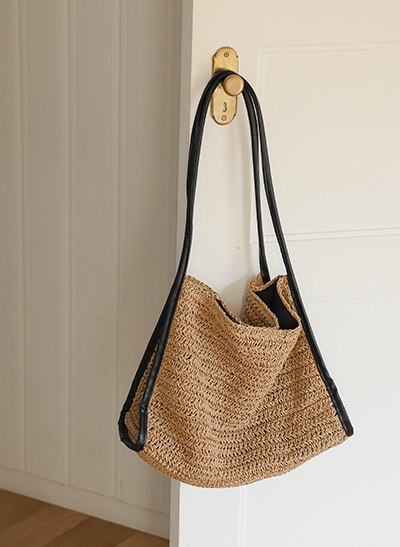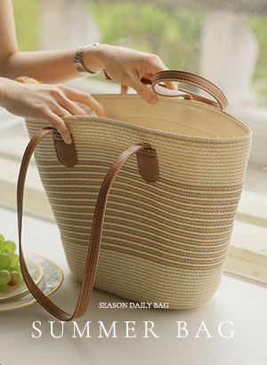 시원하게 바스락거리는 지사100%의 숄더백으로 여름내내 들기 좋은 아이템이구요~ 넉넉한 사이즈로 수납력이 우수하며, 가방 스트랩이 레더 소재로 배색되어 탄탄해요! - 44,000원