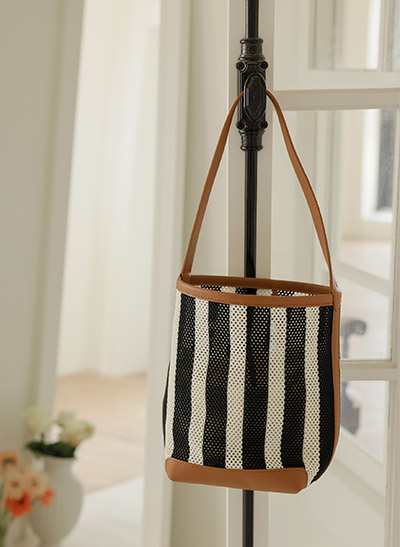 - 8DD00045NN_잔줄배색 지사 바구니백