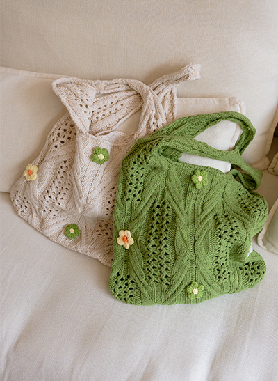 플라워가 들어가 포인트가 되어주는 니트 숄더백이에요! 넉넉한 사이즈로 충분히 소지품을 수납할 수 있어요~ - 21,800원