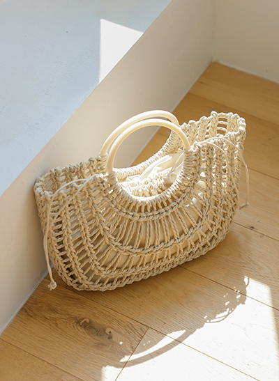 여름 무드가 가득 느껴지는 토트백! 원형 모양의 탑핸들로 그립감이 편안하며, 페이어 지사 소재로 시원하면서도 가볍게 들기 좋아요~ - 39,600원