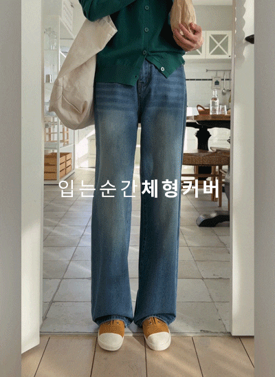 하체 군살을 싹- 커버해주는 와이드 팬츠구요, 생지 데님으로 입기만 해도 트렌디한 감성을 자아내는 데님이랍니다~ 스판이 좋은 소재로 하루 종일 편하게 입어요! -