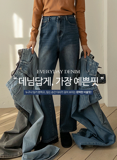 데님답게! 가장 예쁜핏, 비율좋은 청바지는 자꾸만 손이 가게 되잖아요, 핏이 정말 예쁜 청바지로 강력 추천해드려요 다양한 매력을 가진 5가지 컬러와 3가지 기장으로 내가 원하는 데님으로 pick! -