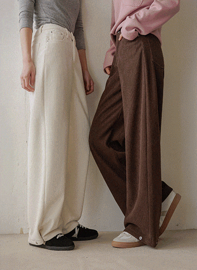 다리를 포근하게 감싸주는 골덴 소재로 따듯하게 입기 좋구요, 핀턱을 잡아 멋스러우면서 세련된 핏을 연출해주어 데일리는 물론 출근룩으로 활용해도 좋은 와이드팬츠랍니다! -