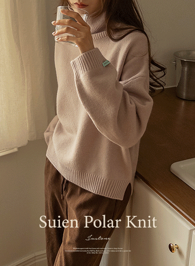 도톰한 두께의 비스코스 소재 혼방으로 따뜻하면서도 파우더리하게 착용되며, 목 전체를 덮어주는 폴라넥으로 든든함은 물론, 잔골지 짜임으로 라인이 슬림하게 보여진답니다 -