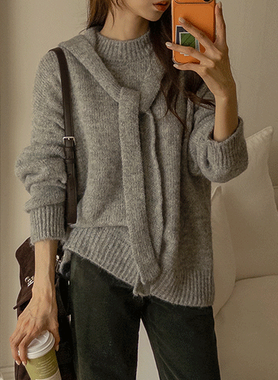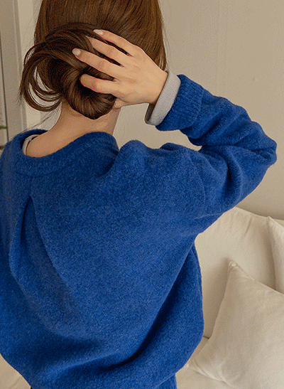 뒷부분에 맞주름으로 포인트가 되어주는 니트라서 머리를 묶어도 예쁘고, 도톰한 울 소재로 보온성이 뛰어나 따듯하게 입기 좋은 아이템이에요 -