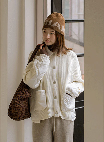 패딩처럼 따뜻하고 니트처럼 포근한 패딩이에요 패딩과 니트가 믹스매치된 디자인으로 유니크함이 보이면서 여유 있는 착용감으로 데일리하게 연출하시기 좋답니다 -