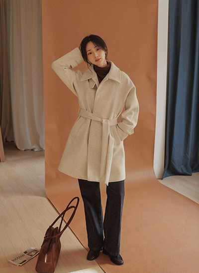 몸판에 2온스 누빔 안감을 더하여 더 따뜻한 코트! 카치온 소재가 혼방된 원단으로 보카시처럼 투톤 느낌이 나 고급스러우며, 허리 벨트가 세트로 구성되어 잘록한 라인감까지 연출할 수 있어요~ -