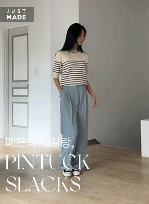 구김이 잘 생기지 않는 찰랑한 소재로 시원한 핀턱슬랙스! 3가지 기장과 5가지 사이즈로 누구나 편하게 입을 수 있는 아이템이에요