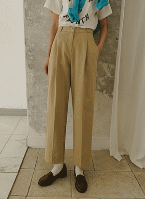 - 8DA28720KK_보릭 탄탄 핀턱 코튼팬츠