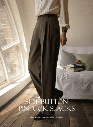 - 5DA28899KK_로렝 사이드버튼 투핀턱 슬랙스