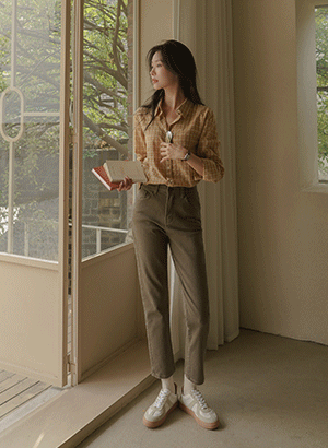 - 6DA27340HH_브론 비죠버튼 핀턱슬랙스(숏/기본/롱)